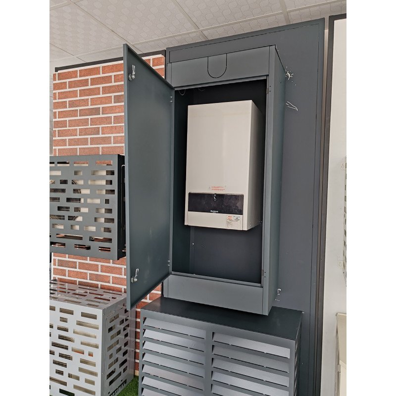 Metal Sağlam Kombi Dolabı, paslanmaya karşı dirençli yapısıyla uzun ömürlü bir kullanım vadeder. Dayanıklı yapısı ile olumsuz hava koşullarına karşı tam koruma sağlar ve kombinizin ömrünü uzatır. Evinizin her köşesine uyum sağlayacak antrasit rengi ile göz alıcı bir görüntü sunar.